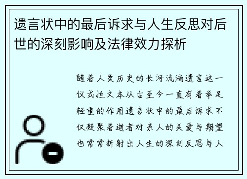 遗言状中的最后诉求与人生反思对后世的深刻影响及法律效力探析