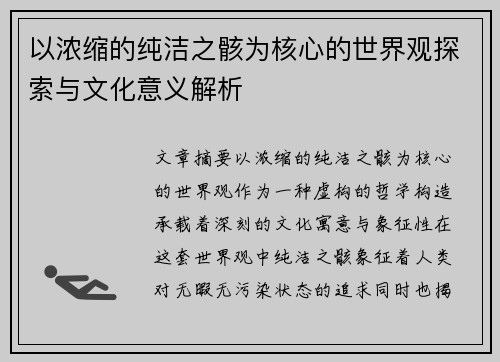 以浓缩的纯洁之骸为核心的世界观探索与文化意义解析
