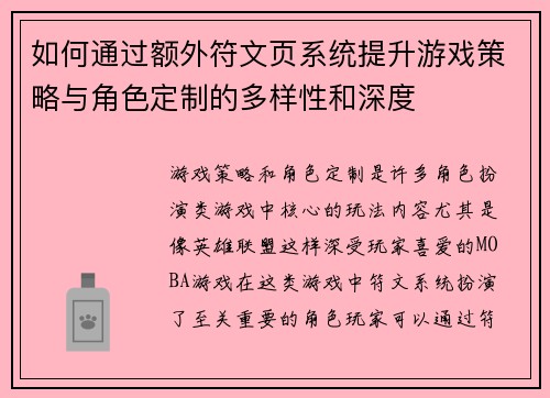 如何通过额外符文页系统提升游戏策略与角色定制的多样性和深度