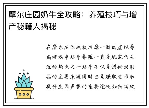 摩尔庄园奶牛全攻略:养殖技巧与增产秘籍大揭秘