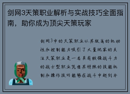 剑网3天策职业解析与实战技巧全面指南,助你成为顶尖天策玩家