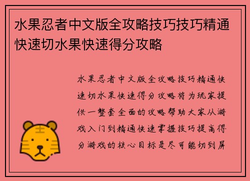水果忍者中文版全攻略技巧技巧精通快速切水果快速得分攻略